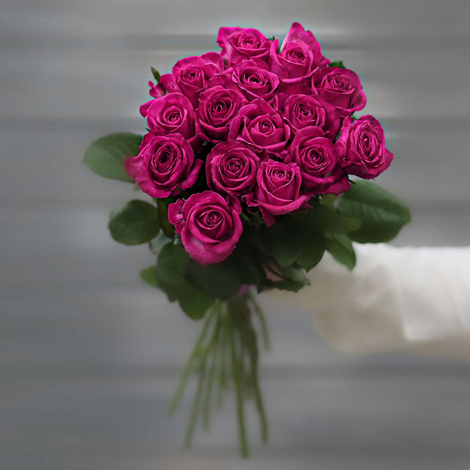 Букет из 17 малиновых роз (Россия) с лентой 60 см