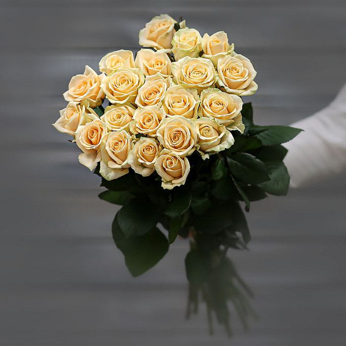 Букет из 21 кремовой розы (Россия) с лентой 60 см