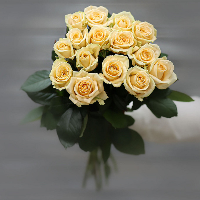 Букет из 13 кремовых роз (Россия) с лентой 60 см