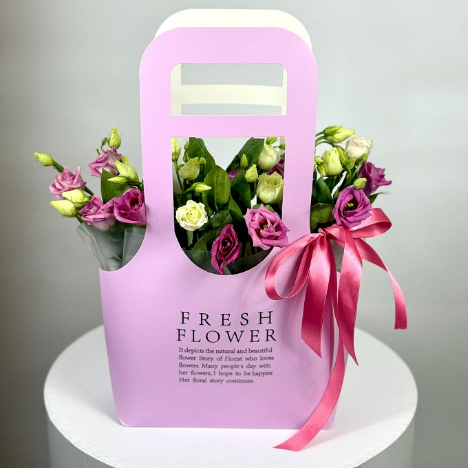 31 зелено-розовая роза в упаковке Кения 40 см.