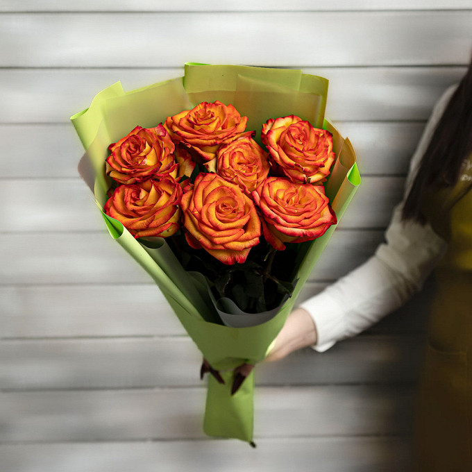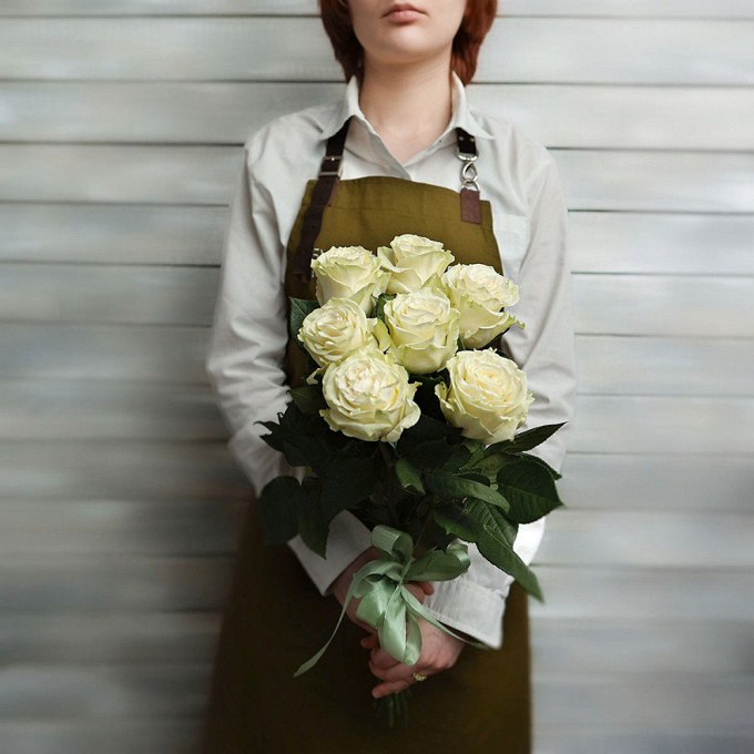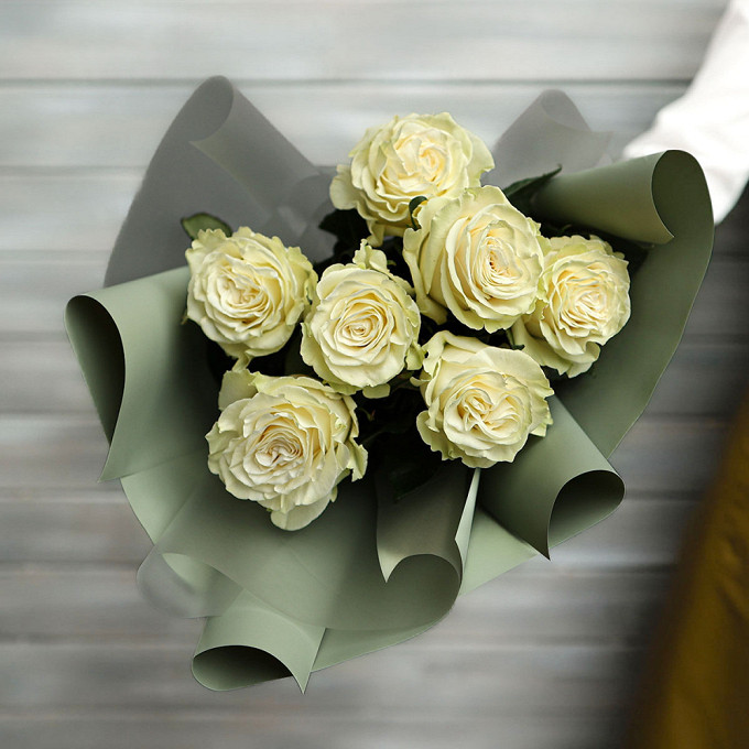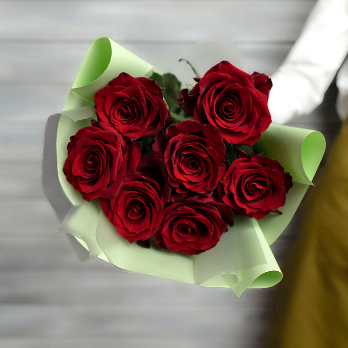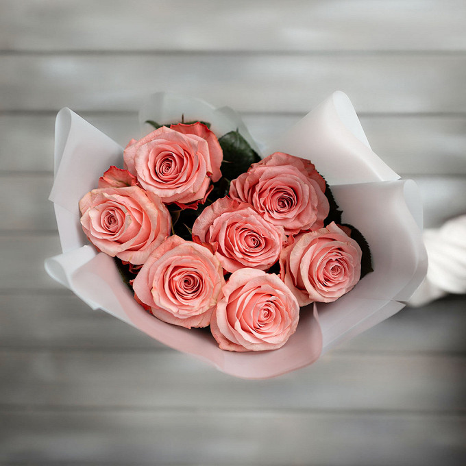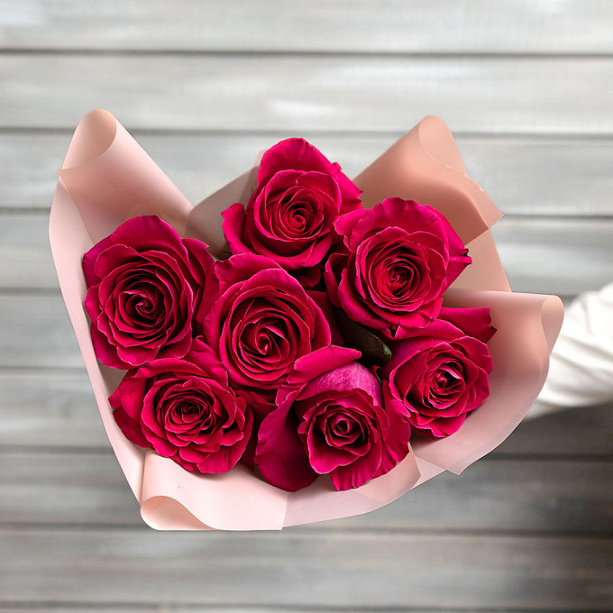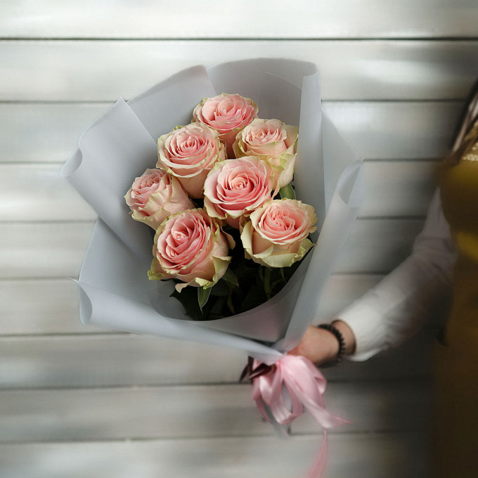 7 нежно-розовых роз Эквадор 50 см в упаковке