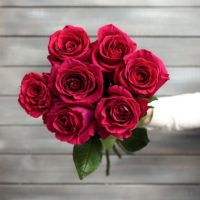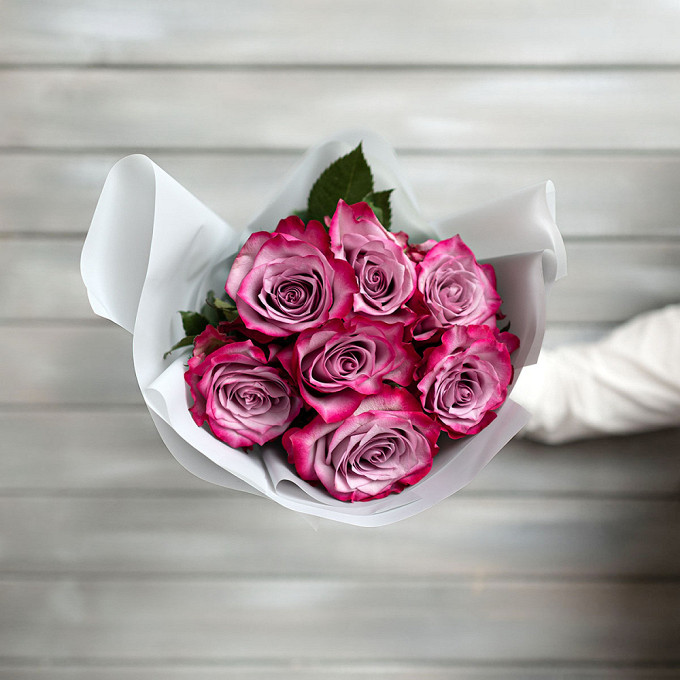 7 фиолетовых роз Эквадор 50 см в упаковке