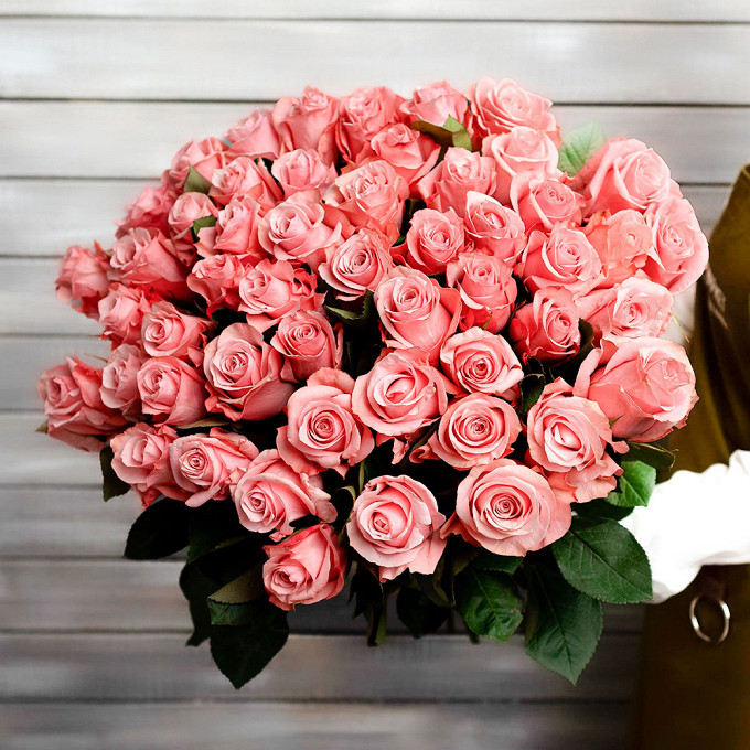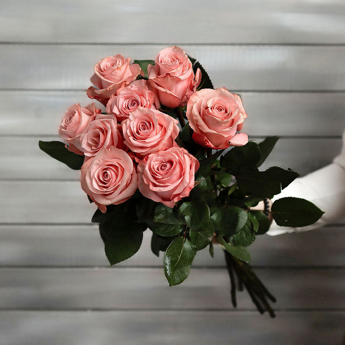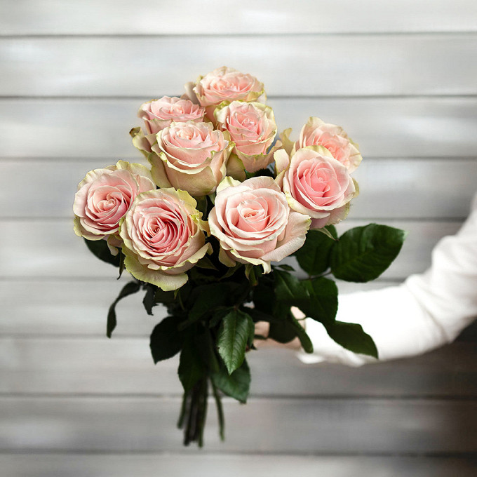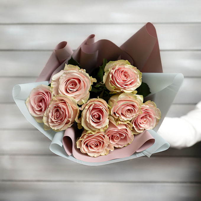 9 нежно-розовых роз Эквадор 50 см в упаковке