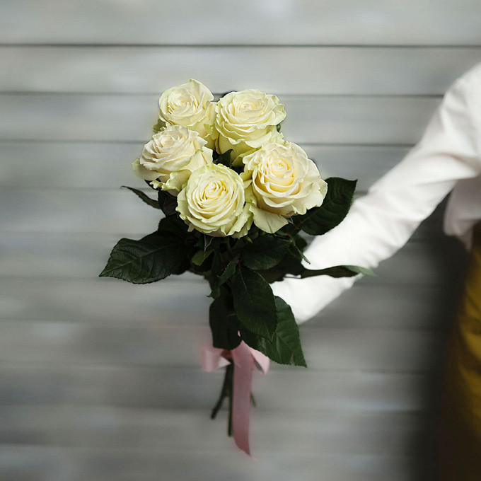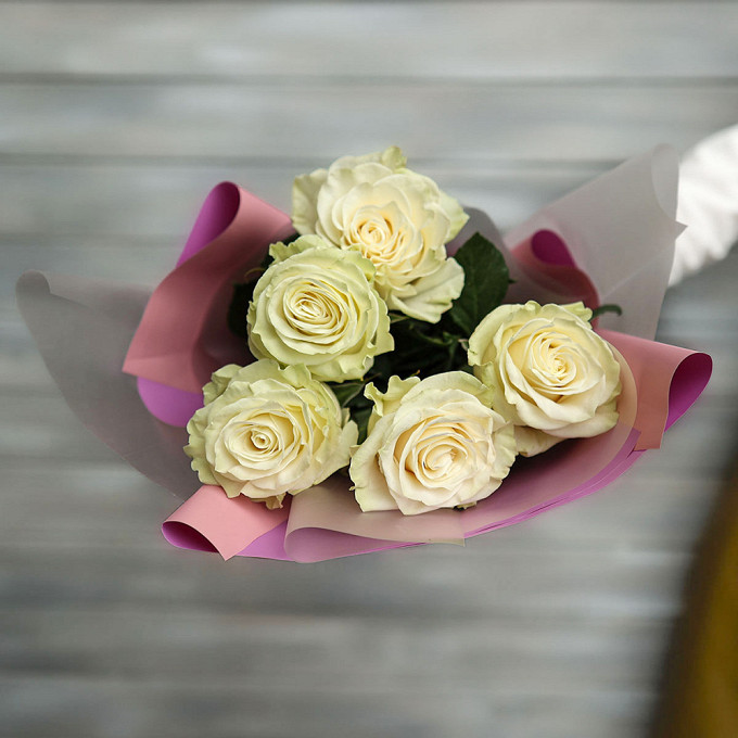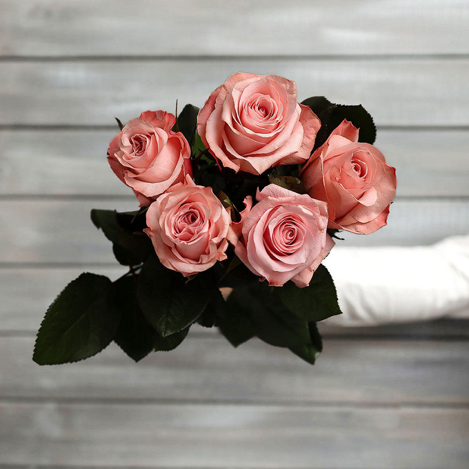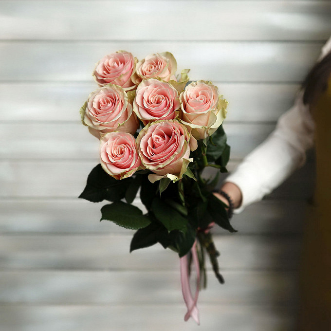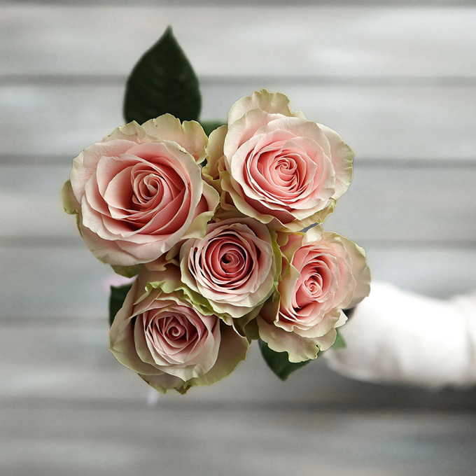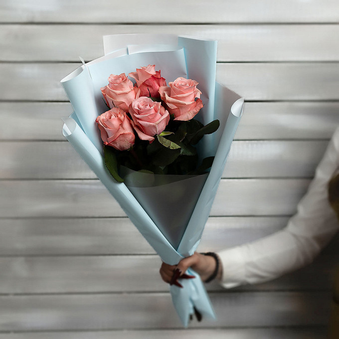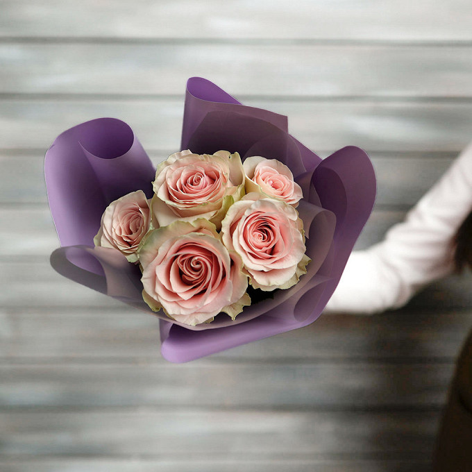 5 нежно-розовых роз Эквадор 50 см в упаковке