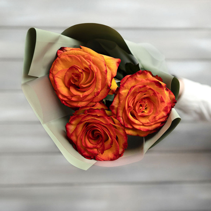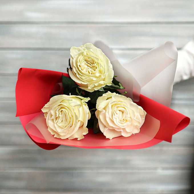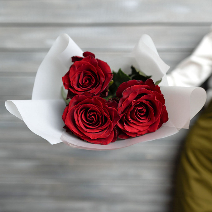 3 нежно-розовые розы Эквадор 50 см в упаковке